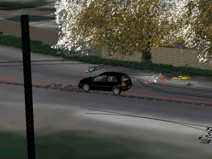 – Determinarea unor parametri ce au influenţat evenimentul rutier (viteză de deplasare vehicule/pietoni, spaţiu de frânare, vizibilitate, poziţii vehicule, distanţă proiectare pietoni etc.);